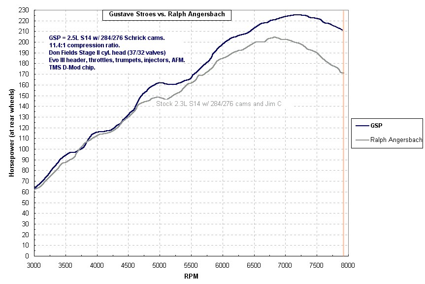 Dyno chart of RWHP - Ralph Angersbach and GSP |